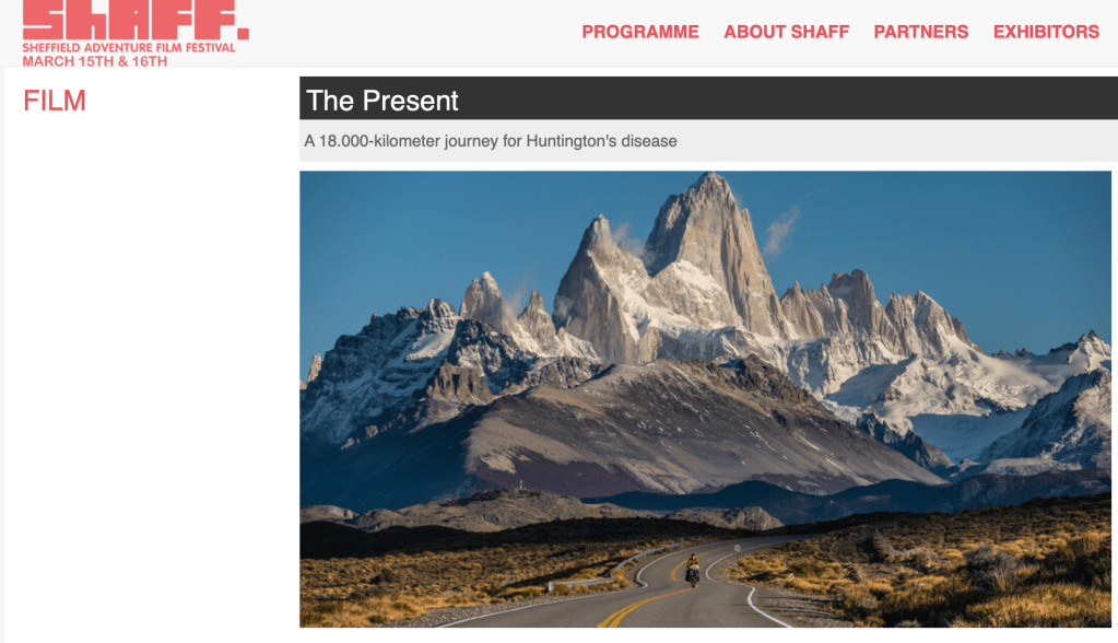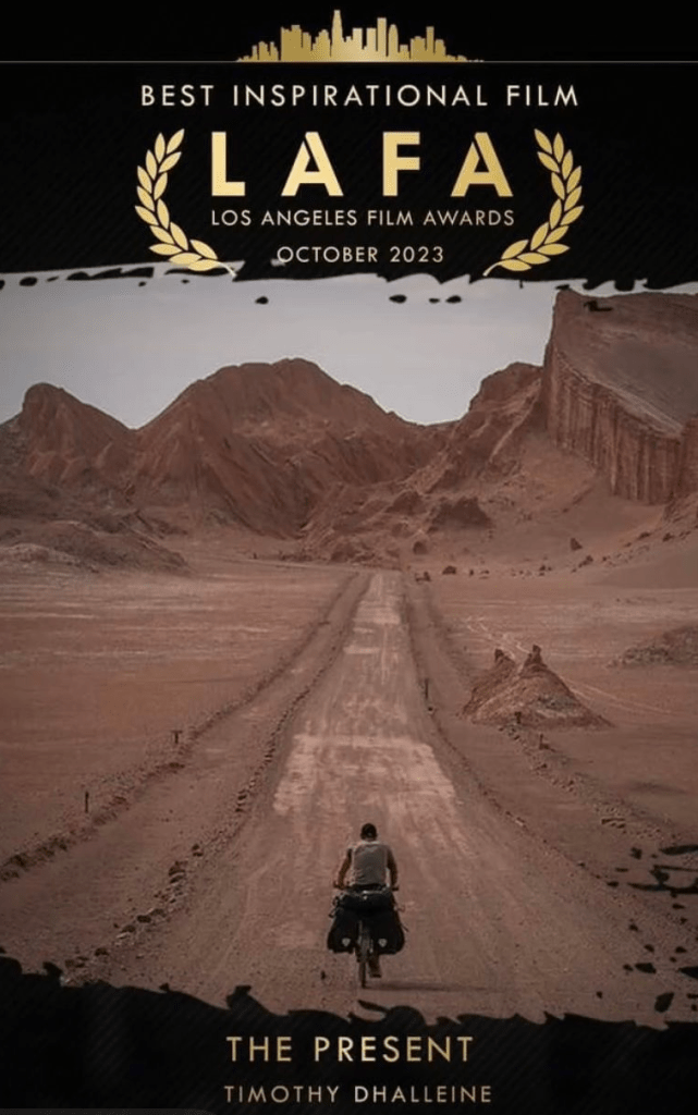 « The Present » est un documentaire d’aventure de 2023 présentant l’histoire de Dimitri Poffé, un voyageur français de 35 ans qui a quitté sa France natale pour entreprendre un voyage à vélo de Mexico à Ushuaia après avoir été testé positif à la maladie de Huntington.